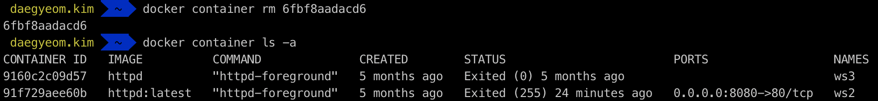 - 종료된 컨테이너 삭제