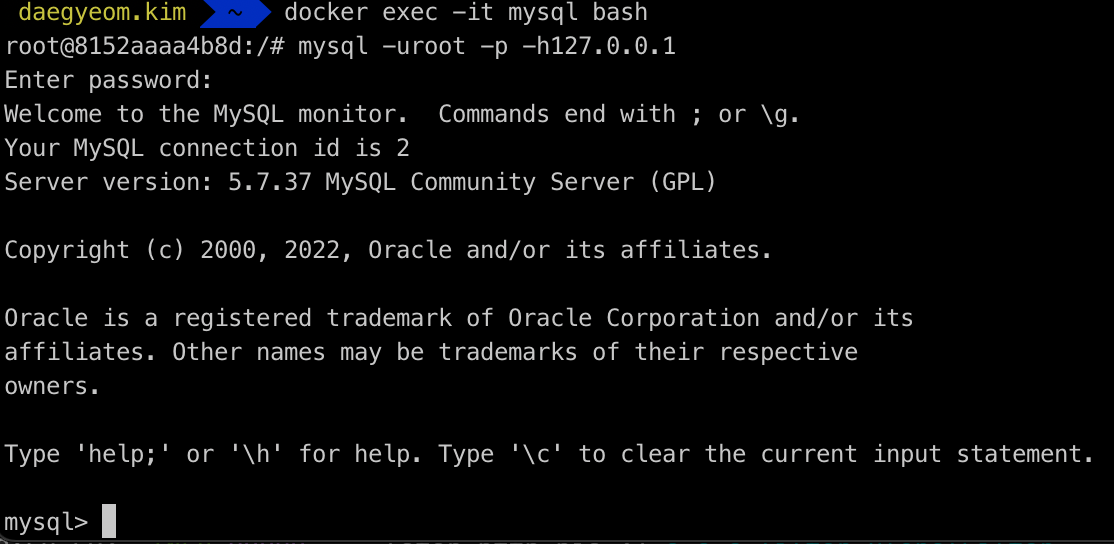 $ docker exec -it mysql bash