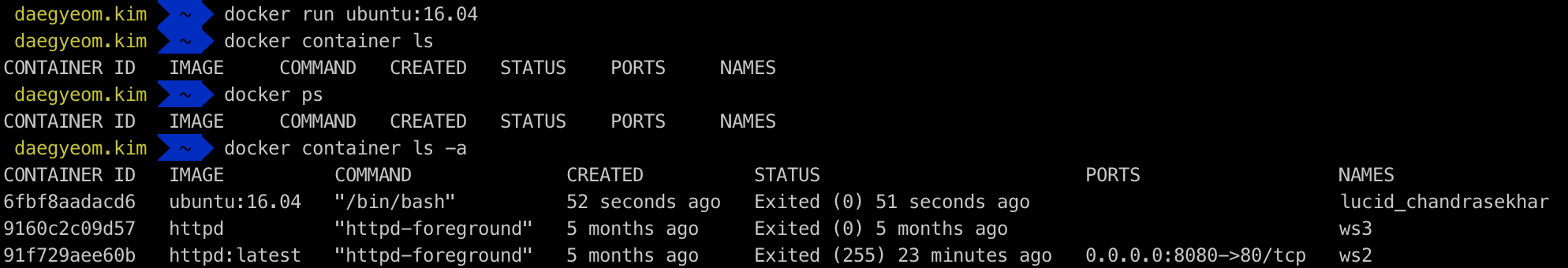 $ docker run ubuntu:16.04