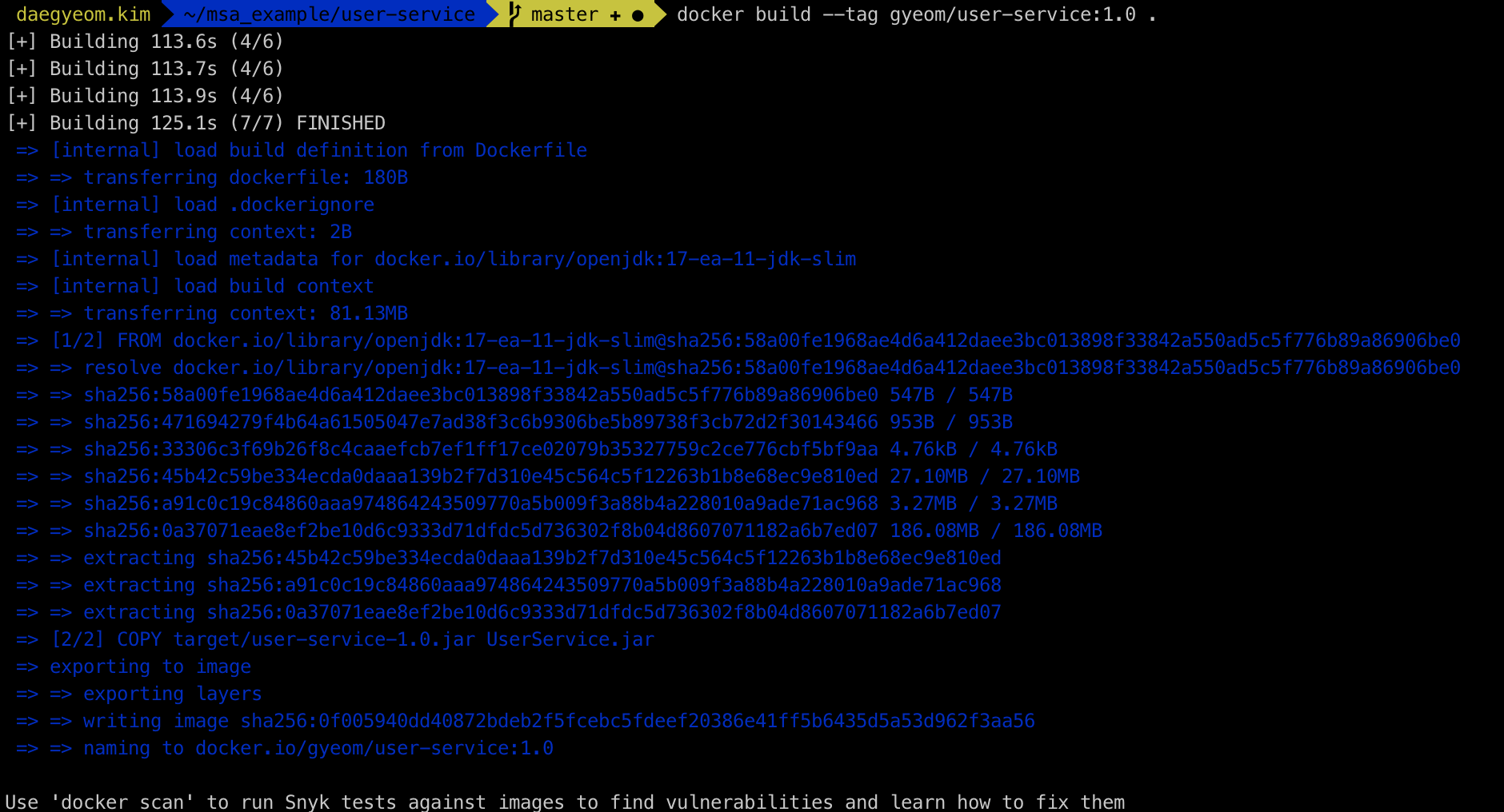 $ docker build -t [유저아이디]/[도커이미지이름] .