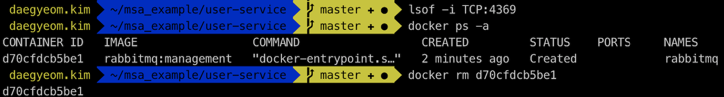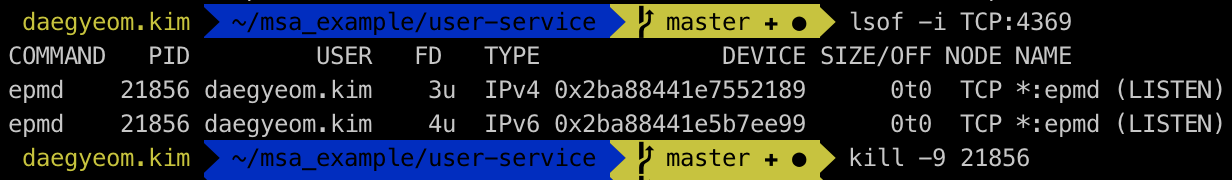 lsof -i TCP:4369 // 해당포트의 사용중인 프로세스 리스트 조회