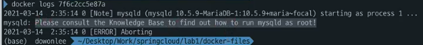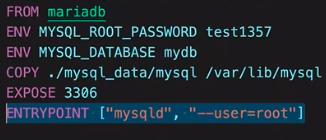위 Dockerfile이 정상적으로 동작하려면 우선 /usr/local/var/mysql 디렉토리에서 db파일을 ./mysql 디렉토리에 백업해놓아야한다.