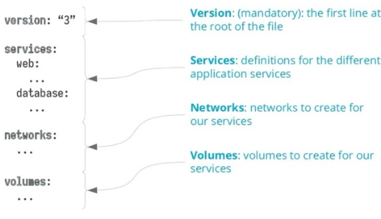 - version, services, networks, volumes 총 4개의 최상위 옵션 버전 (version)