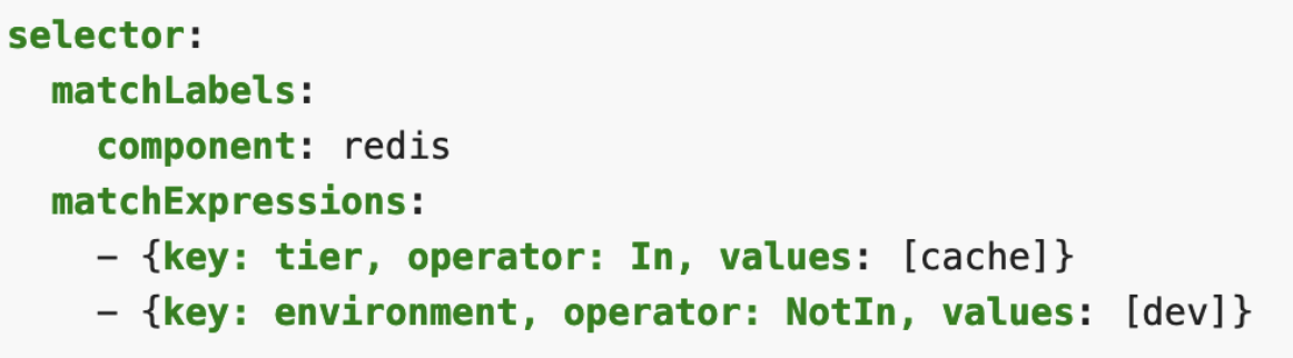 특정 오브젝트 목록을 필터링하기위한 기능이 Label Selector matchLabels와 matchExpressions 옵션 제공