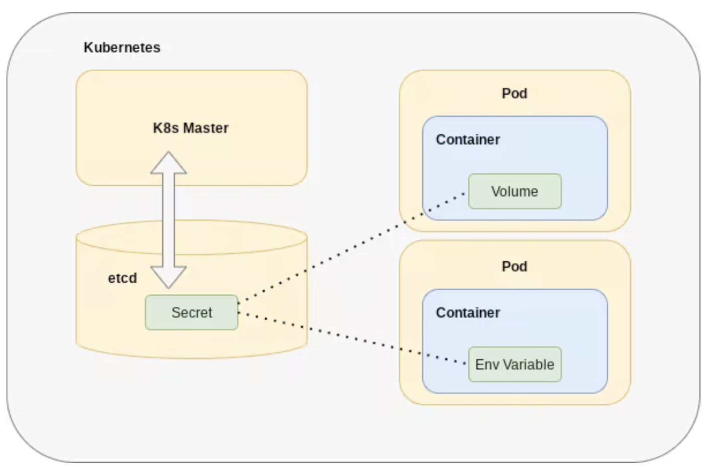 - 쿠버네티스는 기본적으로 시크릿 값을 저장할 때 Base64 인코딩