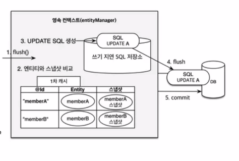 - 영속성 컨텍스트에 저장되었을때 스냅샷을 저장하고 있음
