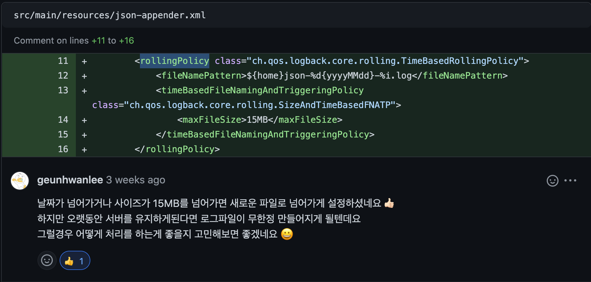 - 로그는 오래된 순서대로 지워지도록 maxHistory를 설정해주자.