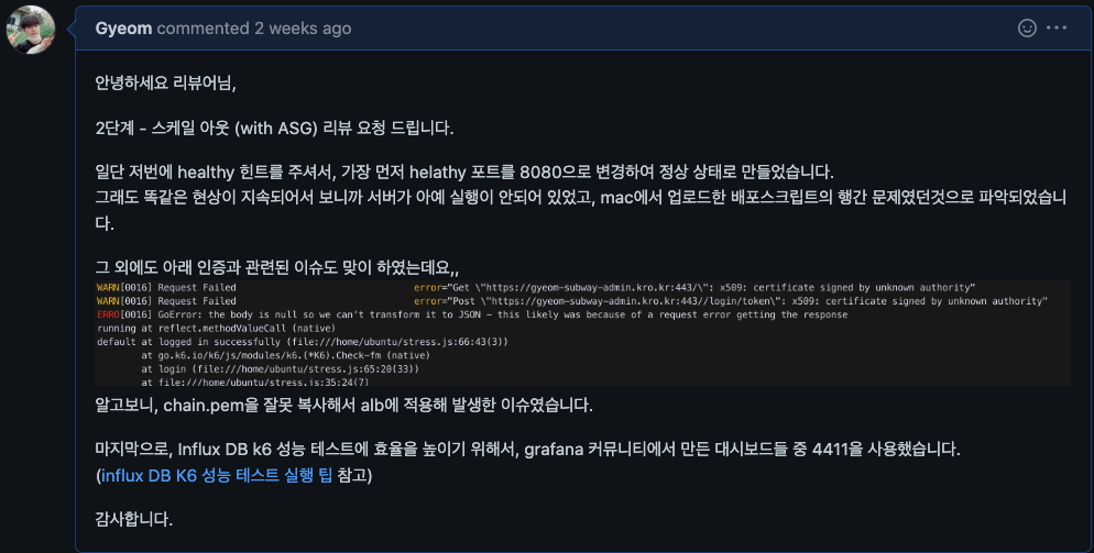 안녕하세요 리뷰어님, 2단계 - 스케일 아웃 (with ASG) 리뷰 요청 드립니다. 일단 저번에 healthy 힌트를 주셔서, 가장 먼저 helathy 포트를 8080으로 변경하여 정상 상태로 만들었습니다. 그래도 똑같은