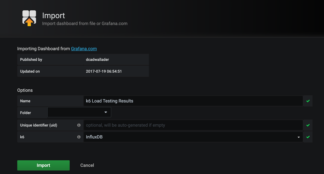 $ k6 run --out influxdb=http://localhost:8086/myk6db smoke.js